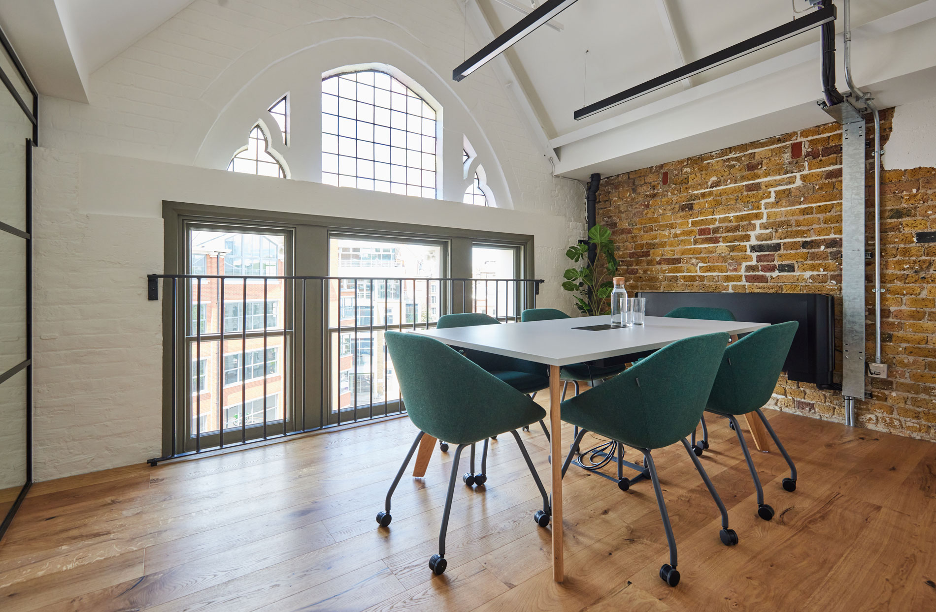 The floors of 18-20 St John Street are a combination of bright, loft-like spaces beckoning small businesses and start-ups in from the streets of Farringdon. Characterised by a charming blend of high ceilings and architectural beams, traditional stained-glass windows, and extensive glass walls overlooking the chimney stacks of residential properties and old warehouses, the spaces are delightful and unforgettable.